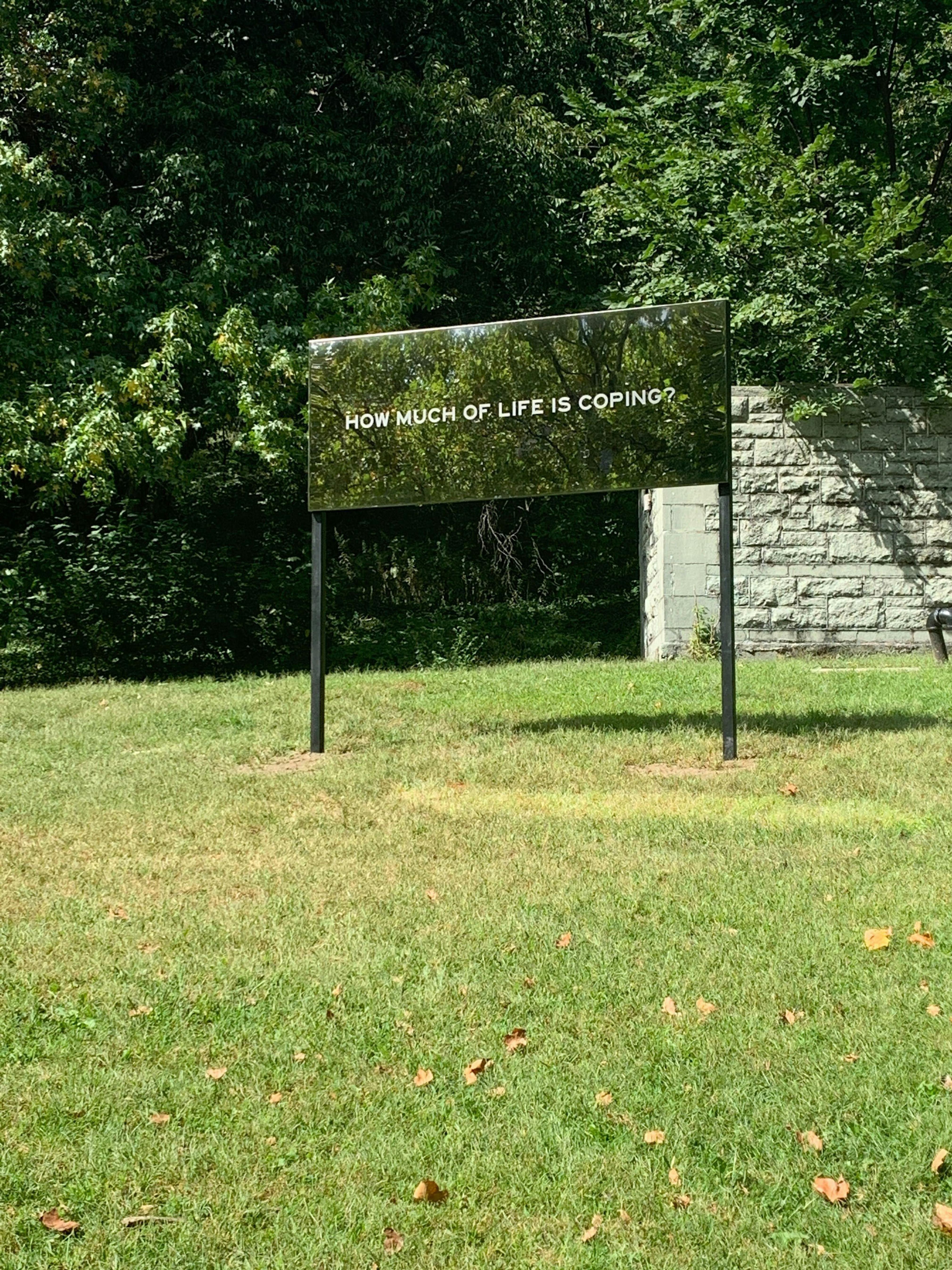 This monumental commission of twenty-four site-specific sculptures gestured toward the structural and visual vernacular of public wayfinding signage through a combination of text and archival images.